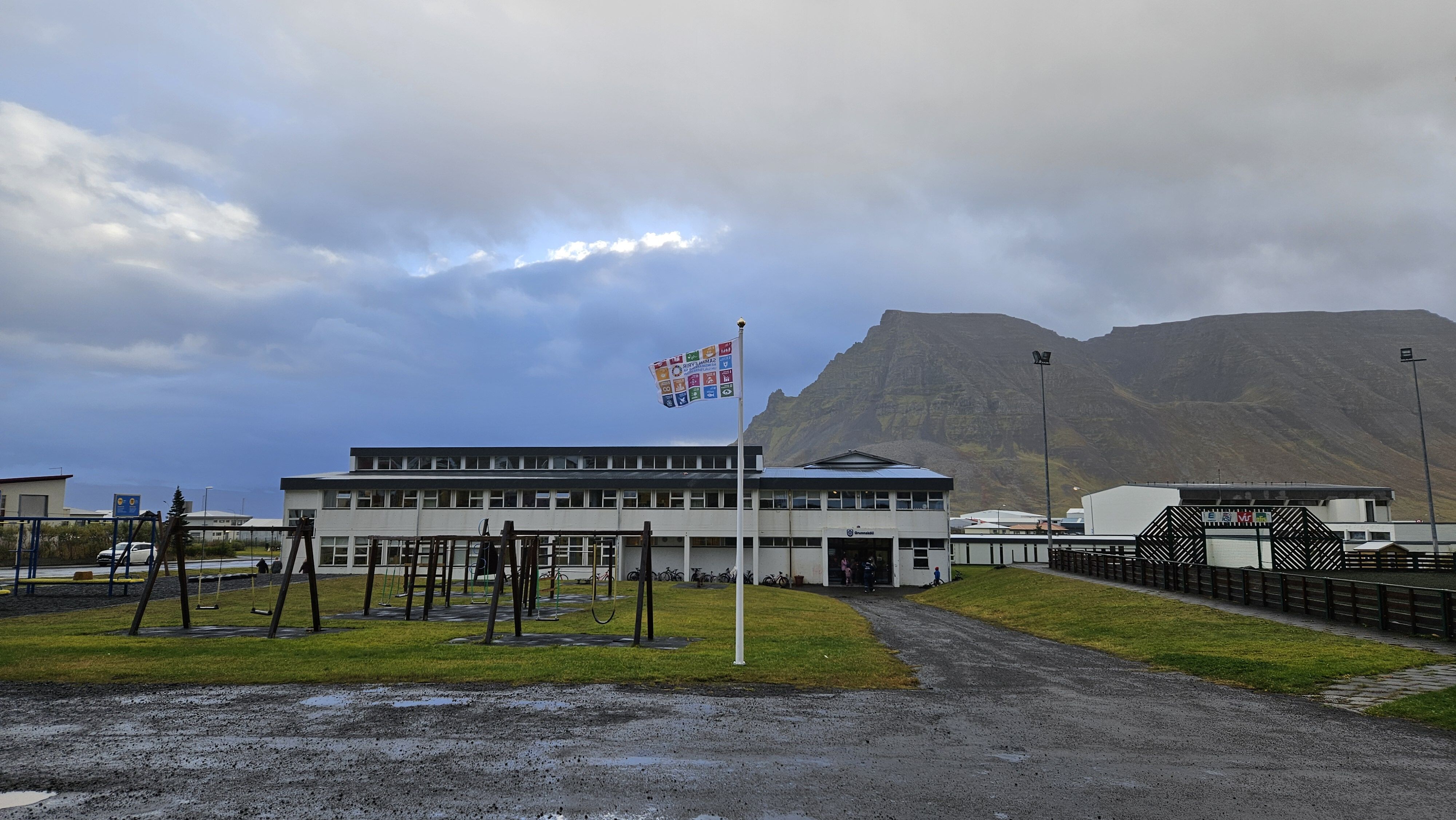 Fánanum var flaggað í morgun og voru það bræðurnir Einar Jóhann (10. bekk) og Elías Guðni (1. bekk) Elvarssynir sem hjálpuðust að við að draga fánann á húni.