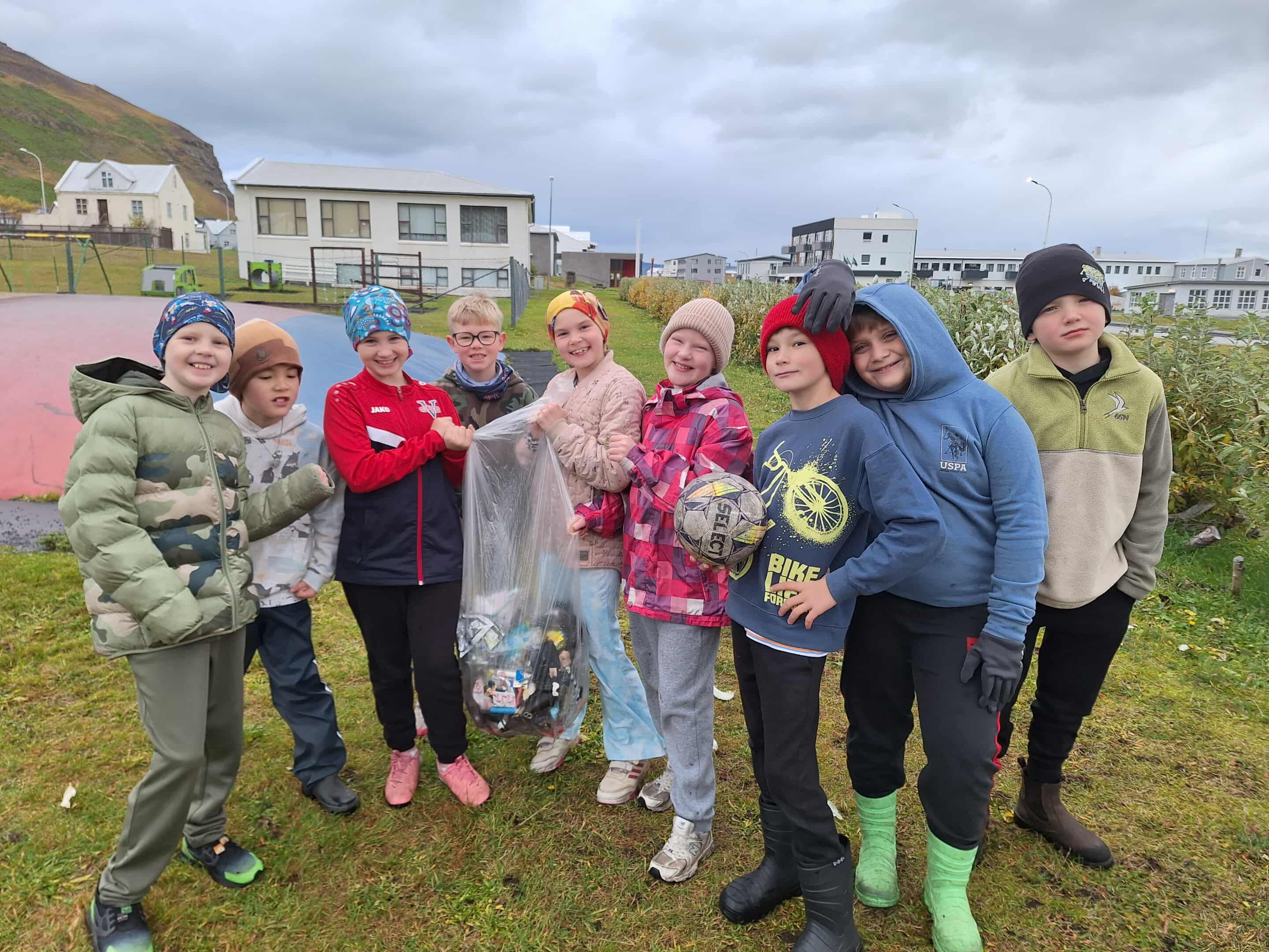 Það var gaman að fylgjast með nemendunum í hamingjuverkefninu ýmist innan dyra í skólanum eða utandyra m.a. að týna rusl, búa til snjókarl eða eiga góða stund úti í náttúrunni.