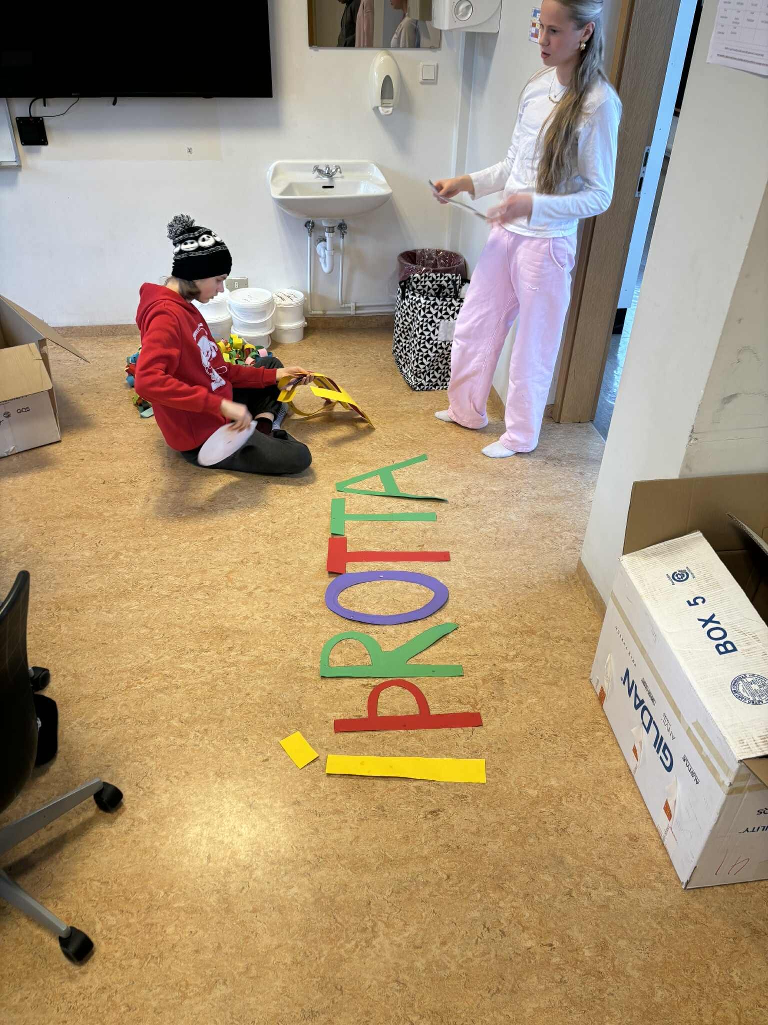 Hér er allt í fullum gangi að undirbúa fyrir Íþróttahátíðina. Unglingastiginu er skipt í nefndir eftir hvað þarf að gera fyrir hátíðina eins og ballnefnd, sjoppunefnd, skreytingarnefnd, skipulagsnefnd, fréttanefnd og tækninefnd.