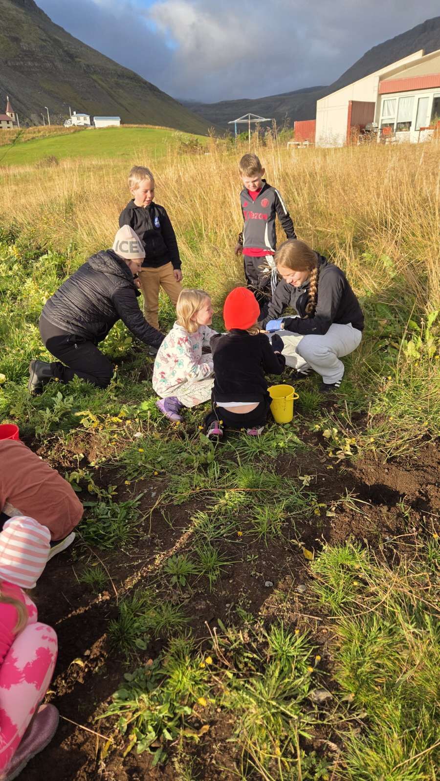 Á vordögum, þegar við héldum Bolóleikana, þá var ein stöð að setja niður kartöflur. Á Degi íslenskrar náttúru var komið komið að því að taka upp úr garðinum. Allir nemendur komu að verkefninu og má með sanni segja að uppskeran okkar þetta haustið sé góð. Kartöflurnar voru skolaðar og þurrkaðar áður en þeim var komið fyrir í mötuneytinu okkar.